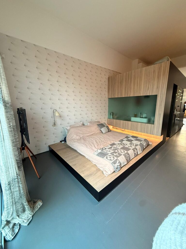BILOCALE DI DESIGN IN STABILE DI NUOVA RIQUALIFICAZIONE – CORSO REGIO PARCO 15 BIS, TORINO (AURORA) Nel cuore del quartiere Aurora, all’ interno del COMPLESSO EX-CEAT – TORINO recentemente riqualificato con destinazione terziaria e residenziale, proponiamo in vendita un elegante bilocale di design sito in Corso Regio Parco 15 bis. Il progetto architettonico ha previsto la demolizione e rigenerazione completa degli edifici interni dello storico stabilimento per la produzione di cavi elettrici, dando vita a un moderno contesto residenziale con giardino condominiale interno e doppi piani di autorimessa sotterranea. L’appartamento, situato al piano secondo, è composto da: ingresso su ampio living con cucina a vista, lavanderia bagno con finiture di pregio, camera matrimoniale due balconi con affacci su aree parallele. Lo spazio interno è stato progettato come una sequenza fluida di ambienti funzionali, dove materiali e texture si alternano per creare atmosfere diverse a seconda delle attività quotidiane. Il volume centrale in legno Fraké, che integra letto, bagno, lavanderia e cucina, dialoga con il corridoio mediante superfici laccate nere, mentre le tende serigrafate si trasformano in pannelli e arredi a morfologia variabile. Un’abitazione unica nel suo genere, ideale per chi cerca un ambiente contemporaneo, funzionale e di design in un contesto urbano in piena trasformazione. Per ulteriori informazioni e per visionare l’immobile è possibile contattare i seguenti numeri: 3922908183 / 3398359499 011610173